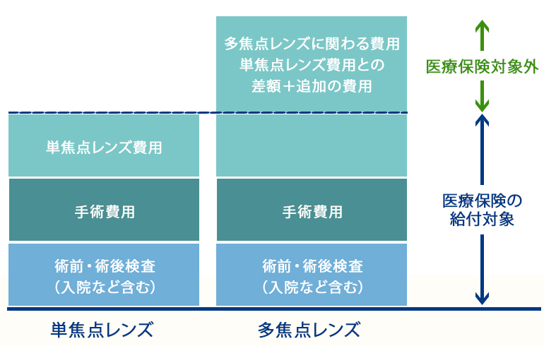 手術費用や診察代には健康保険が適用され、レンズの差額分のみをご負担いただくことで、以前よりも費用を抑えて高機能なレンズを選択いただけます。